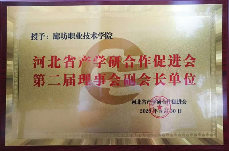 河北省产学研合作促进会是由河北省区域内产业界、教育界、科技界、金融界及学术界致力于产学研合作的部门、单位以及热心促进产学研合作工作者组成的全省性、非营利性社会团体。促进会以实施国家创新驱动发展战略,促进我省以企业为主体、市场为导向、产学研深度融合的技术创新体系的建立为目标,搭建产学研合作平台,引导和支持创新要素向企业集聚,促进科技成果向现实生产力转化,推动中小企业转型升级。为推动河北省创新体系建设服务,为加快区域经济创新发展服务,为提升企业自主创新能力服务,为我省实现创新发展、绿色发展、高质量发展提供强大科技力量。我院的加入必将大大提高学院的知名度、提升服务区域经济的能力。