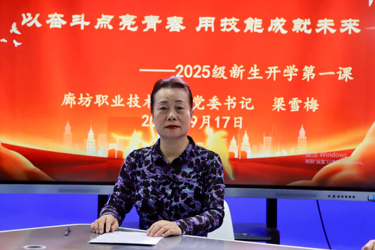 在就业发展与青年奋斗方面,梁雪梅勉励同学们立大志、明大德,做有信仰的新时代青年。信仰无声,高歌以行。要在心中扎根信仰的种子,树立共产主义远大理想,听党话、感党恩、跟党走。保持初生牛犊不怕虎的劲头,不忘初心,立志笃行,努力成长为堪当民族复兴重任的时代新人。练本领、强技能,做有担当的技术精英。要珍惜在校时光,扎实学习专业知识,熟练掌握专业技能。时刻保持一颗敬畏之心,尊重知识,尊重技能、尊重老师,提升自主学习能力,主动融入京津冀协同发展和廊坊高质量发展战略之中,以优异的成绩和过硬的技能回报国家、回报学校、回报父母,做德智体美劳全面发展的社会主义建设者和接班人。勇创新、敢突破,做有作为的大国工匠。创新引领时代,实干成就梦想。希望同学们敢闯敢试,既扎根专业又放眼未来,努力成长为有作为、有担当的大国工匠。