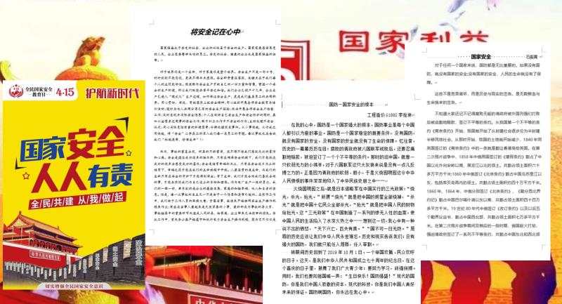 2020年4月15日是我国第5个全民国家安全教育日。国泰民安是人民群众最基本、最普遍的愿望。实现中华民族伟大复兴的中国梦,保证人民安居乐业,国家安全是头等大事。为增强学生的国家安全意识,提高学生应对危险因素的能力,我系于4月7日至15日组织开展了主题班会、主题征文等形式的国家安全宣传教育活动。