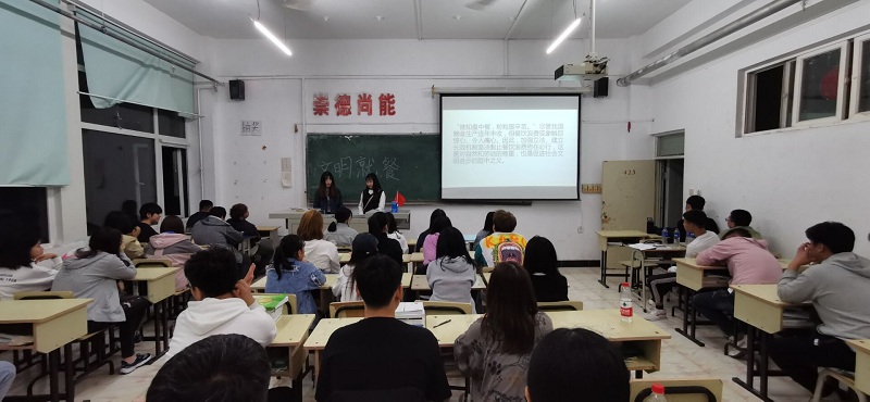 10月9日,计算机科学与工程系组织开展以“节俭养德、文明用餐”为主题的第二课堂宣传教育活动,宣传文明就餐行为,要求学生佩戴口罩进出食堂,守住一米线排队取餐,提倡节约餐具、自备餐具,以及节约为荣、浪费可耻的就餐理念,教育学生要传承勤俭节约的中华民族传统美德。