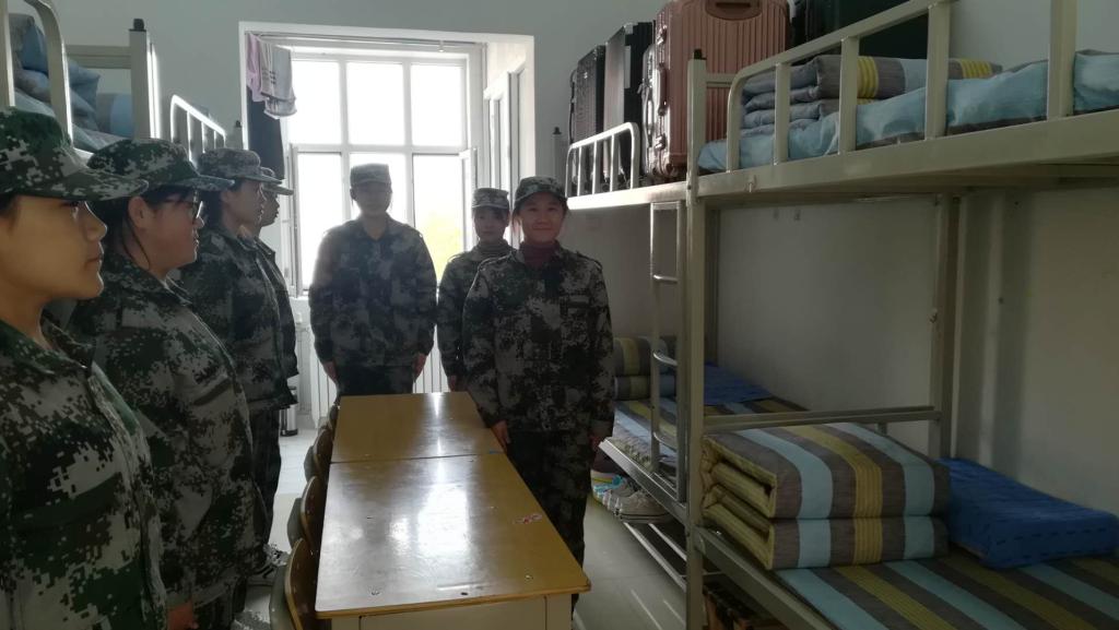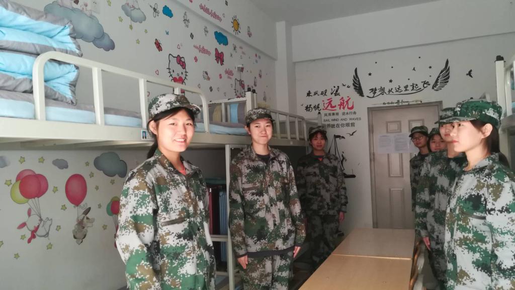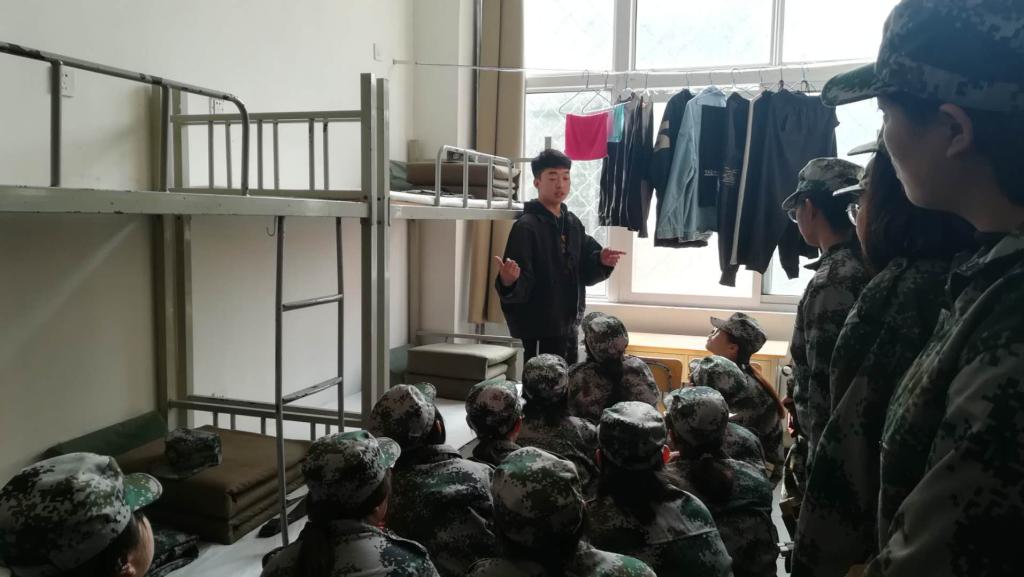为引导新生养成良好的个人生活习惯,营造整洁舒适的宿舍环境,教官对学生提出了严格的要求,讲解并示范了叠被子的方法。院国旗班同学向新生们演示了军人的内务标准,详细讲解并示范了被子、洗漱用具、椅子、行李等摆放位置和方法。为整齐划一,辅导员们也对内务整理提出了严格的要求,所有墙面干净整洁,不允许悬挂小饰品,宿舍内死角都彻底擦洗干净,对宿舍地面也用清洁剂打扫得干净整洁。新生辅导员坚持每天检查一次内务,对各个宿舍高标准、严要求。经过师生的共同努力,每个宿舍都窗明几净,焕然一新。