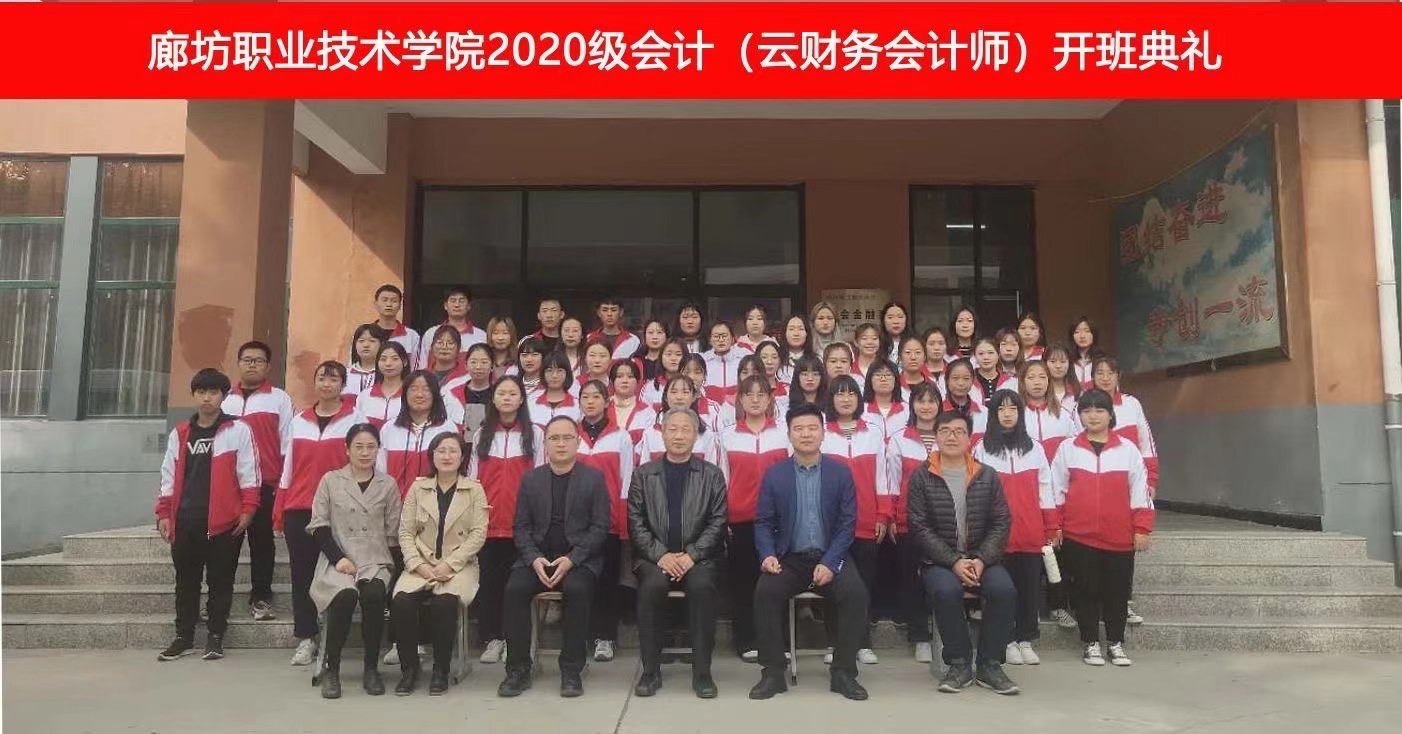 本次2020级会计(云财务会计方向)开班,得到了廊坊职业技术学院、用友集团新道科技股份有限公司的大力支持,相信在同学们的共同努力下,大家一定会学有所成、学有所获、成就自己、成就人生!