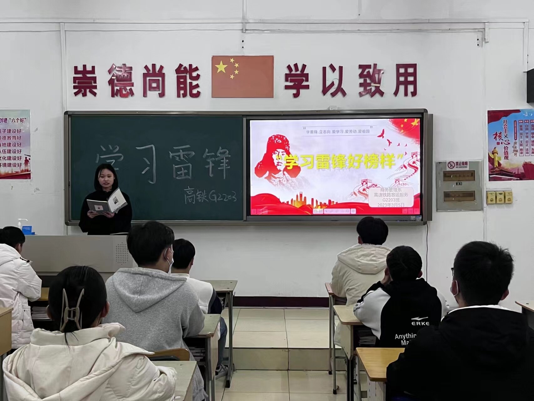 为大力弘扬雷锋精神,提升大学生的思想道德素质和精神文明素养,强化学生德育教育,商务管理系于3月5日晚自习组织各班召开了“学习雷锋好榜样”主题班会。