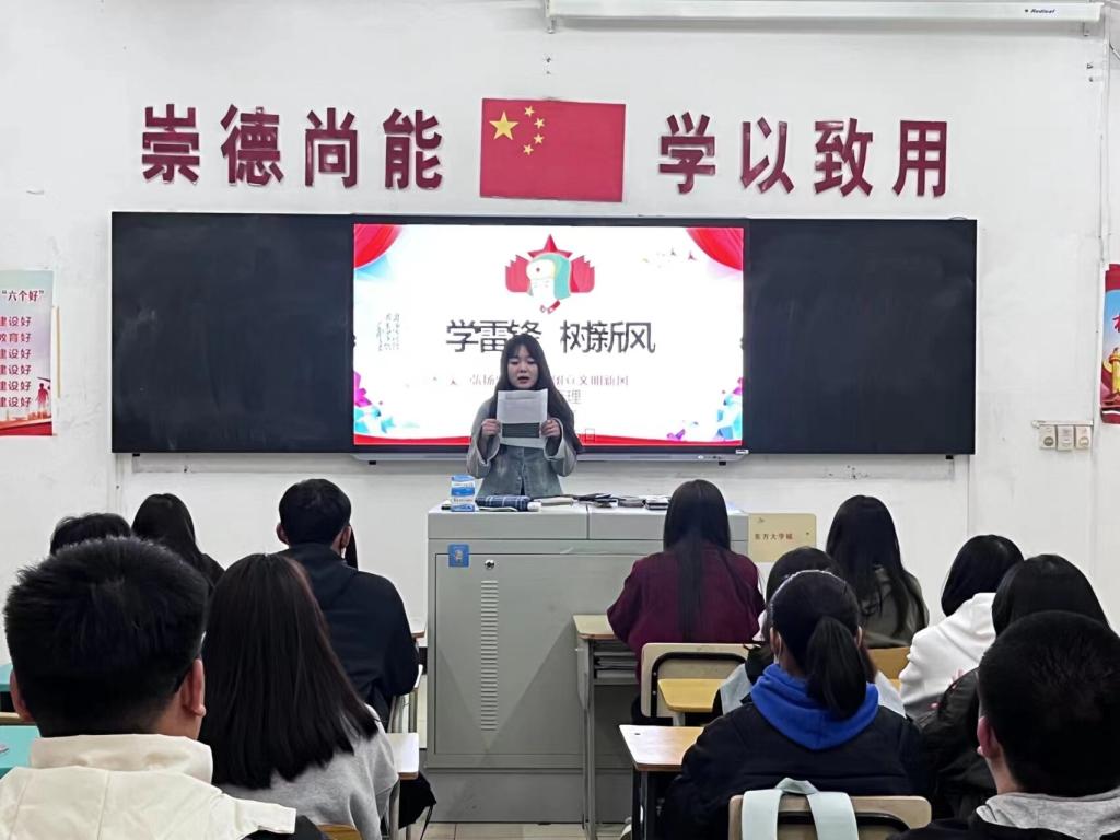 班会上,同学们观看了有关雷锋同志的影视资料,各班团支书通过视频和PPT介绍了雷锋同志的生平和他在日常生活中的一些看似微不足道实际上却深入人心、感人至深的事情。同学们积极参与、踊跃发言,把身边的"雷锋人物"、榜样事迹、经典案例讲出来与大家分享,进行了分组讨论。